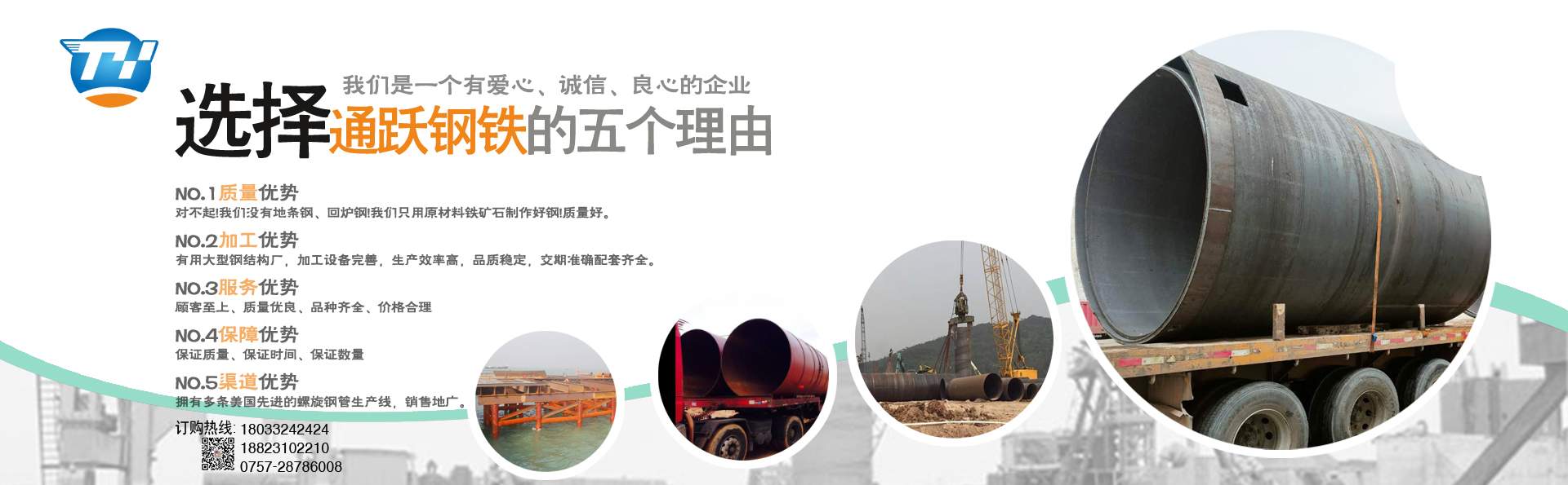 佛山市通躍鋼鐵有限公司 擁有多條先進(jìn)的螺旋鋼管生產(chǎn)線,生產(chǎn)直徑φ159-φ3620mm(壁厚6mm-20mm)的雙面埋弧螺旋焊鋼管。 生產(chǎn)螺旋管 螺旋鋼管 螺旋焊管 規(guī)格厚度6mm-20mm 直徑159mm-3620mm 有多條鋼板卷管機(jī)生產(chǎn)規(guī)格厚度6mm-70mm 直徑400mm-5020mm 螺旋管 螺旋鋼管 鋼護(hù)筒 焊接鋼護(hù)筒 鋼板卷管 丁字焊管 加工格構(gòu)柱 鋼管樁 材質(zhì)Q235B Q345B Q235A 45# 20# Q420D Q390D 錳板 歡迎來電報(bào)價(jià),公司配有大型型材 鋼板倉庫,大量各種規(guī)格現(xiàn)貨H型鋼 槽鋼 角鋼 工字鋼 鋼板,鍍鋅方管 鍍鋅產(chǎn)品 產(chǎn)品可以定尺定長(zhǎng),提供打砂,除銹,上油漆,公司配有防腐加工廠,專業(yè)對(duì)鋼管進(jìn)行內(nèi)外壁防腐加工,鋼管外壁主要有三油兩布,五油三布,環(huán)氧煤瀝青及環(huán)氧樹脂漆,各種高分子涂料。 ……了解更多